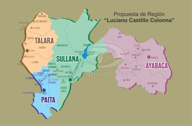 ERP. Diversas voces comentan con beneplácito la propuesta de una nueva región llamada Luciano Castillo Colonna que integraría las provincias de Sullana, Talara, Paita y Ayabaca. Subyace en el entusiasmo, los cuestionamientos contra Piura, un gran "pulpo" que distribuye de manera indebida los recursos y otras capacidades logísticas que deberían ser más equitativas y homogéneas entre todas las provincias.