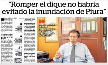 ERP. La inundación del 27 de marzo tiene muchas aristas y muchos argumentos para entenderse. El Ing. Jorge Reyes de la Universidad de Piura, mediante entrevista concedida a un diario de circulación regional, indicó que romper el dique Independencia, no habría evitado la inundación, considerando la propuesta del asesor regional Carlo Bertini Hurtado, quien además es presidente del directorio del Chira Piura.