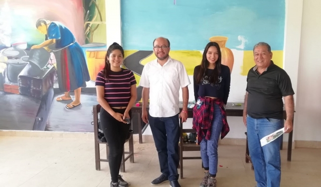 Al costado de su obra recién iniciada luce otro mural que es su autoría donde se perenniza el preparado de la comida, la misma que a simple percepción parece haber sido realizada por un eximio muralista; pero no, son estas jóvenes que, con su sensibilidad de mujer, le han dado a esa pared, el color y la armonía, que pronto estará a disposición de la vista de ocasionales comensales.