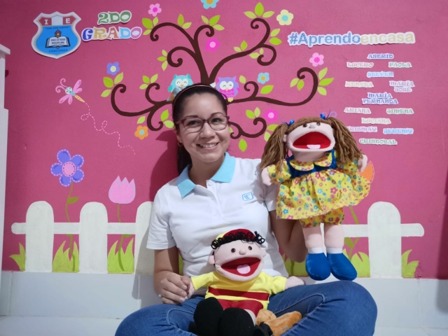 Una de ellas es la profesora Melina Quinteros Azcárate, quien tiene a cargo a 13 estudiantes del segundo grado de primaria, en la I.E. Juan José Farfán del distrito fronterizo de Lancones, en Sullana, que ha implementado en su propia habitación un espacio denominado “El Rincón Educativo”, con el fin de hacer más entretenidas y explicativas las clases a distancia, en el marco de la estrategia Aprendo en casa implementada por el Ministerio de Educación , en el marco de Estado de Emergencia por el COVID-19.