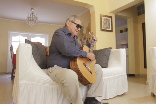 “Tendría 7 u 8 años, luego, mis tíos, me regalaron mi primera guitarra, de procedencia de la cárcel, pues en ese entonces no había fabricantes reconocidos como ahora”, nos cuenta, mientras pulsa las cuerdas de una guitarra.