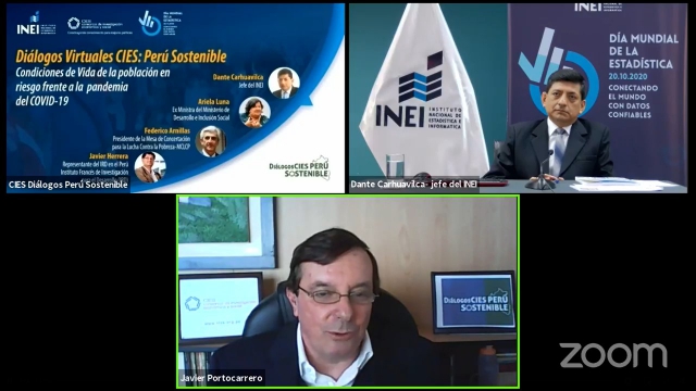 ERP. El jefe del INEI, Dante Carhuavilca, presentó data estadística sobre las condiciones de vida de la población en riesgo frente a la pandemia. Su exposición se realizó en el 11vo Diálogo CIES: "Perú Sostenible" y en el marco del Día Internacional de la Estadística, donde indicó que 13 millones de peruanos sufre de alguna enfermedad crónica.