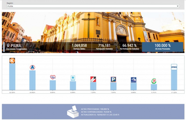 Jurado Electoral Especial de Piura mantiene aún el 24% de actas pendientes de resolver en elecciones congresales