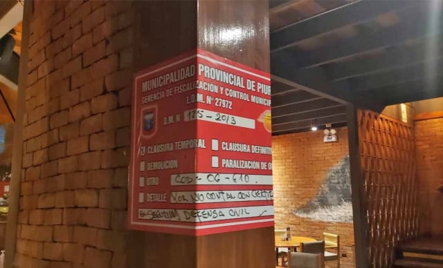 ERP. La Municipalidad Provincial de Piura clausuró la Pollería Calixto por no contar con certificado de defensa civil, así como al restaurante El Maná por superar el aforo correspondiente en época de pandemia, aspectos que ponen en riesgo la seguridad y salud de quienes asistentes a estos establecimientos, máxime en esta etapa que vive la región y el país.
