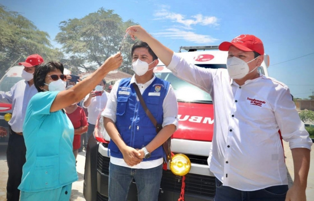 ERP. En medio de la pandemia que atravesamos a causa del Covid-19, el Gobierno Regional Piura continúa fortaleciendo el primer nivel de atención en salud en toda la región. Por ello, durante la campaña médica realizada en el frontis del estadio distrital de Bernal, que contó con el apoyo de la Policía Nacional del Perú y miembros de Serenazgo, se hizo efectiva la entrega de dos modernas ambulancias para los establecimientos del distrito de Bernal y el Centro Poblado Parachique-La Bocana.
