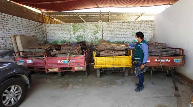 ERP. En Piura, la Policía Nacional del Perú y el Servicio Nacional Forestal y de Fauna Silvestre (SERFOR) del Ministerio de Desarrollo Agrario y Riego (MIDAGRI), decomisaron 337 trozas y 350 unidades de leña de la especie forestal Prosopis pallida, algorrobo, talado de forma ilegal, que se encontraba a bordo de seis motofurgones.