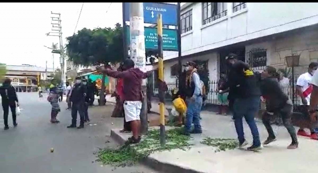 ERP. Fiscalizadores de la Municipalidad Provincial de Piura fueron agredidos por un grupo de ambulantes que persisten en seguir en las calles, tras haber sido desalojados ayer tanto del interior y alrededores del complejo de mercados de la ciudad.