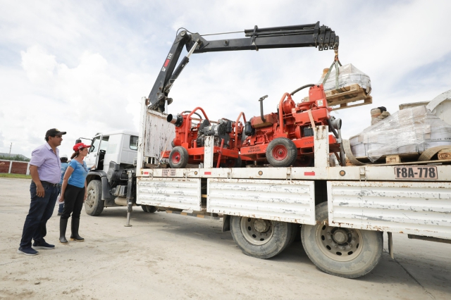 ERP. Maquinarias se desplazarán a los distritos de Veintiséis de Octubre, Piura y Castilla. La ministra de Vivienda, Construcción y Saneamiento (MVCS), Hania Pérez de Cuéllar, acompañada del gobernador regional de Piura, Luis Neyra; supervisó hoy el traslado de 6 motobombas de seis pulgadas para continuar con el drenaje de las aguas pluviales en los distritos de Veintiséis de Octubre, Piura y Castilla de la región Piura.