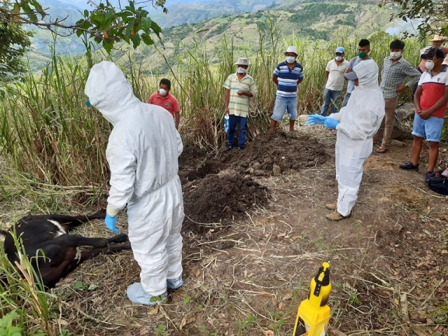 ERP. Como parte de las acciones priorizadas para proteger la ganadería familiar de la región Piura, el Ministerio de Agricultura y Riego, a través del SENASA, realizó la inspección clínica del ganado bovino ubicado en el caserío Pampas de Socchabamba en Ayabaca, el pasado 18 de mayo. Dentro de la atención a la notificación se realizó la necropsia de un animal y la extracción de muestras para determinar las causas de su muerte.