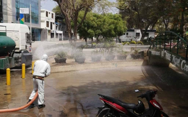 ERP. La Municipalidad Provincial de Piura realizó la labor de desinfección del Parque Miguel Cortés o Parque Infantil y la Concha Acústica debido a la presencia, en horas de la noche del último sábado, de un indigente colombiano con signos de covid-19 y una persona fallecida al parecer por tuberculosis.