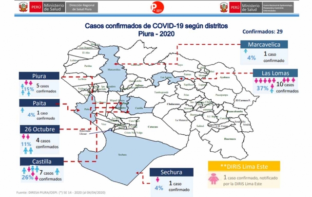 ERP. La Dirección Regional de Salud de Piura, a través de la Sala Situacional, informa que el número de fallecidos por coronavirus se incrementado a dos. La víctima de la pandemia se trata de un varón de 67 años, procedente del distrito de Veintiséis de Octubre, el mismo que registra hasta la fecha 4 casos confimados de covid-19.