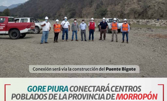 ERP. El Gobierno Regional Piura hizo entrega del terreno para el inicio de la elaboración del expediente técnico del proyecto para la construcción del Puente Bigote que permitirá unir a los centros poblados: La Quemazón, Los Ranchos, La Pareja, Bado de Garzas, Faical y el distrito de Lalaquíz.