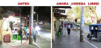 Como se puede apreciar en las fotografías hay un ¡antes! y un ¡después!, ahora las veredas están libre de obstáculos y felicitamos a los comerciantes por su amplia colaboración y disposición para subsanar estas deficiencias..