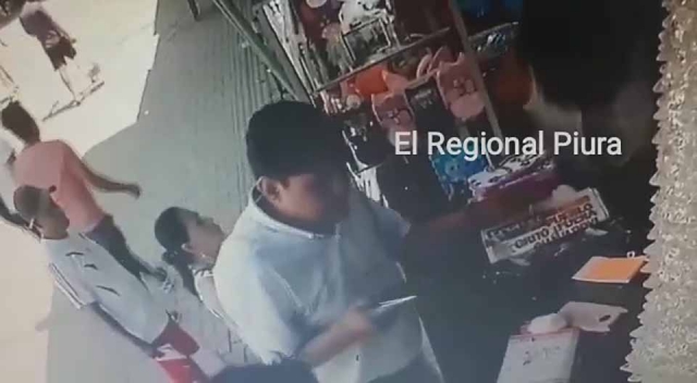 ERP. Ocurrió en CC "La Casona". Este sujeto fue captado por cámaras de seguridad cuando robó el celular de una vendedora en el centro comercial "La Casona" en Sullana.