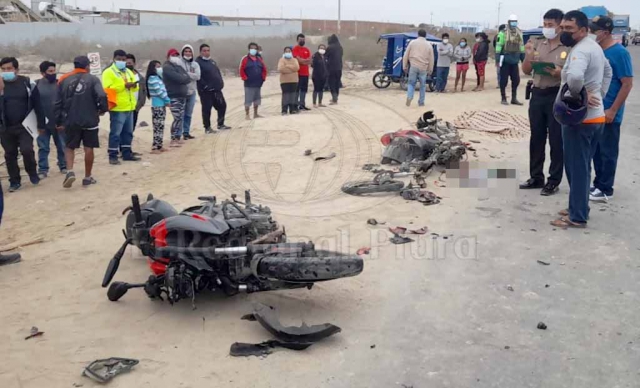 ERP. Una persona fallecida y un herido es el saldo de un choque ocurrido esta mañana entre dos motocicletas en la vía Sullana - Paita. Se trata de José Rojas Sabalú de 45 años, quién colisionó violentamente contra otra moto lineal falleciendo de manera instantánea debido a los fuertes golpes recibidos, mientras que el herido fue trasladado a emergencia del Hospital de Apoyo II-2 de Sullana.