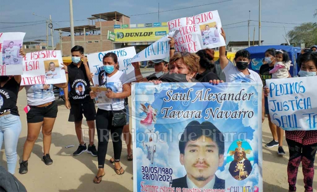 ERP. Familiares y vecinos de Saúl Alexander Távara Navarro (29) quien perdió la vida hace diez meses al ser golpeado salvajemente, protestaron a inmediaciones de la corte Superior de Justicia de Sullana, debido a la lentitud en el proceso. Exigieron que el médico legista dé el resultado para que se pueda hacer la acusación ante el Juzgado de Investigación Preparatoria.