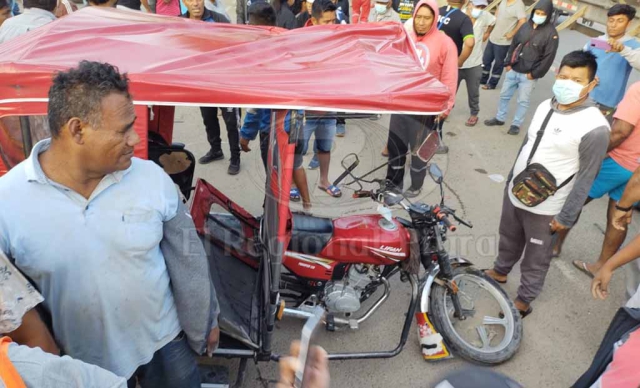 ERP. Esta mañana un triple choque dejó como saldo dos personas heridas, cuando dos mototaxis chocaron violentamente contra un tráiler en la vía Sullana - Tambogrande. Se trata de Juan Soto Miñán (33), Sergio Adalberto Mendoza Ávila (39) y Laura Estrada Correa (37) quienes fueron conducidos a la emergencia del Hospital de Apoyo II-2 de Sullana.