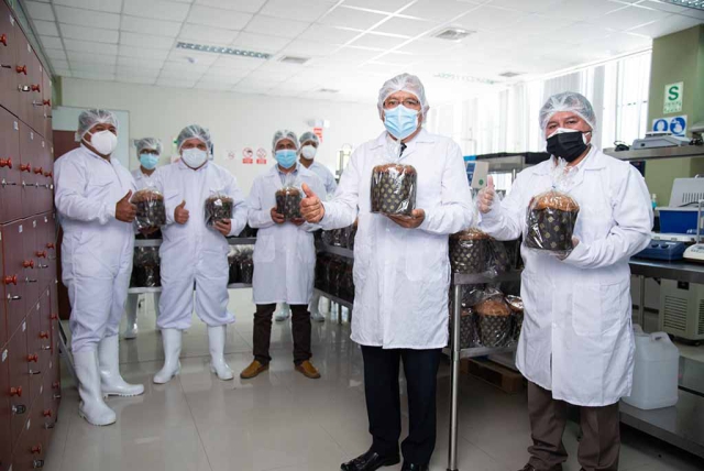 El Presidente de la Comisión Organizadora de la UNF, Dr. Raúl Edgardo Natividad Ferrer, junto a la Vicepresidente Académica, Dra. Denesy Palacios Jiménez y el Vicepresidente de Investigación, Dr. Freddy Mejía Coico felicitaron al equipo liderado por el Mg. Willian Aldana Juárez y exhortaron a continuar con investigaciones sobre el uso y aprovechamiento de la biodiversidad de la zona en la industria alimentaria.