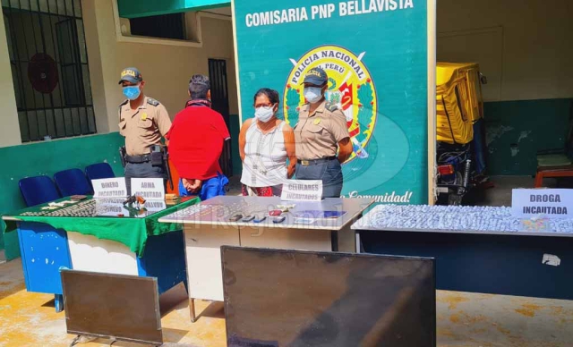 Tras el registor en diferentes ambientes de la vivienda se encontró 1193 quetes de Pasta Básica de Cocaína (PBC), un escopetín, 414 soles y dos celulares. Ambos fueron conducidos a la comisaría de Bellavista.