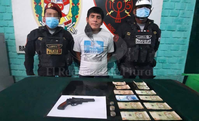 El detenido fue identificado como Carlos Abad Litano a quien le hallaron 221 soles en billetes y monedas. Además, le encontraron en la pretina, una réplica de arma de fuego. Seguidamente fue conducido a la sede policial de la zona, donde fue puesto a disposición por los efectivos policiales que lo intervinieron.
