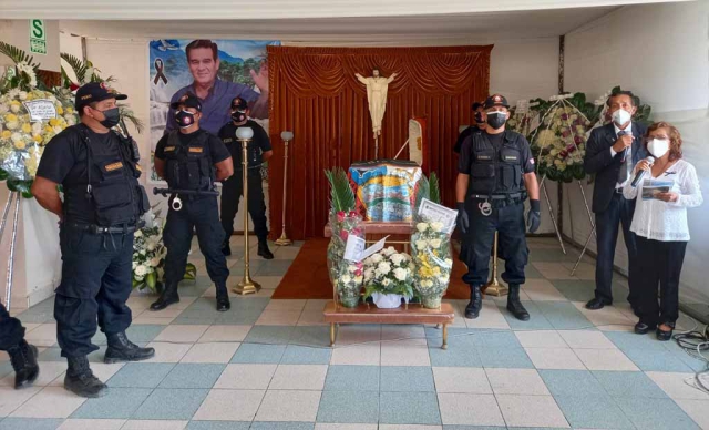 Por otro lado un grupo de serenos de la municipalidad de Sullana realizó la Guardia de Honor al féretro del exalcalde de Sullana.