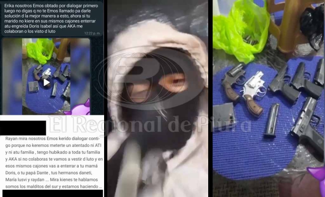 "Nosotros hemos optado por dialogar primero, luego no digas que no te hemos llamado para darte solución" se lee en el mensaje donde además agregan "si tu marido no quiere arreglar, en sus mismos cajones vamos a enterrar a tu engreída, así que acá me colaboras o te visto de luto" agregaron en esta modalidad que incrementa los riesgops de la población sullanera..