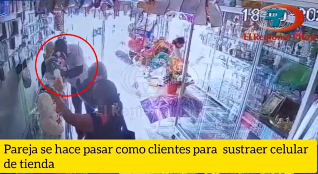 ERP/C.Chávez. Una pareja ingresó a una tienda ubicada en la segunda cuadra de la calle 5 del barrio Buenos Aires, en la provincia de Sullana, haciéndose pasar como clientes para llevarse un celular de uno de los estantes.
