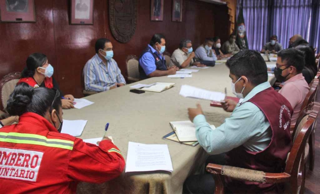 El regidor Luis Almestar en representación del alcalde Power Saldaña presidió la reunión de la plataforma de Defensa Civil para determinar las acciones operativas y evaluar la capacidad de respuesta de las instituciones intervinientes.
