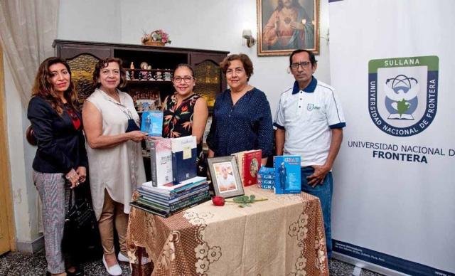 La Vicepresidenta Académica, Dra. Denesy Palacios Jiménez, en representación de la Comisión Organizadora de la UNF, acudió hasta la vivienda de la familia Moya Estrada, en la Av. Santa Rosa de Sullana, donde las hijas Patricia y Virginia, con el respaldo de sus hermanos Gustavo y María Alicia, formalizaron la entrega de enciclopedias, diccionarios y libros de autoría de don Reynaldo Moya Espinoza, entre los cuales destaca el libro: “Grau, el peruano del Milenio”.
