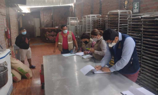 Asimismo, acudieron a la panadería y pastelería “Don José”, de la calle El Alto, encontrando sucias las bandejas de preparación y de hornear el producto; las bolsas de harina y azúcar estaban en el piso y no en parihuelas para su almacenamiento; los servicios higiénicos estaban sucios; los extintores y los certificados médicos se encontraban vencidos y carecían de un plan Covid, por ello se aplicó una multa del 10 por ciento de la UIT. También, llegaron a la panadería “Molipan”, donde encontraron que el plan Covid-19 estaba desactualizado y carecían de certificado de fumigación, aplicando la multa del 20 por ciento de la UIT.
