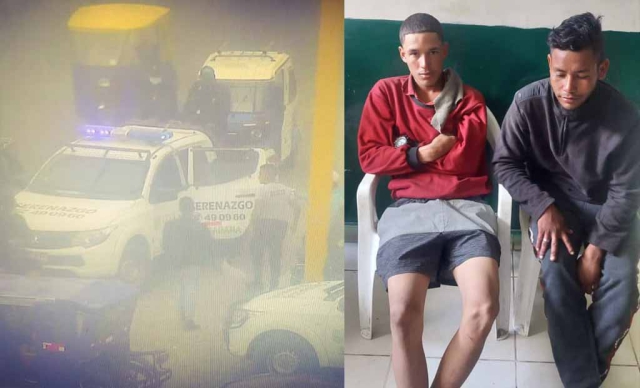 ERP. Dos personas de nacionalidad venezolana fueron intervenidas por personal policial y serenazgo, a la altura del óvalo Las Capullanas, tras ser divisadas en actitud sospechosa por las cámaras de seguridad. Uno de los intervenidos tenía en posesión un arma blanca con que amenazaban a los conductores.