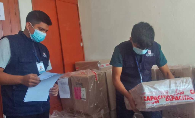 El material de capacitación llegó a la ODPE Sullana la tarde de ayer a cargo de un comisionado de la Oficina Nacional de Procesos Electorales (ONPE) y custodiado por efectivos de la Policía Nacional del Perú.