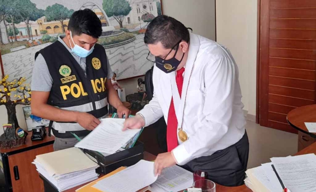 La diligencia, conducida por el fiscal provincial Luis Ramos Rioja, se llevó a cabo en el local municipal y los domicilios de un grupo de proveedores que tendrían vinculación política con el burgomaestre.Todo ello fue autorizado por el Poder Judicial, con la finalidad que se pueda realizar esta acción, que compromete a 9 funcionarios varios de ellos ubicados en puestos claves para la contratación y proceso de ejecución de la misma.