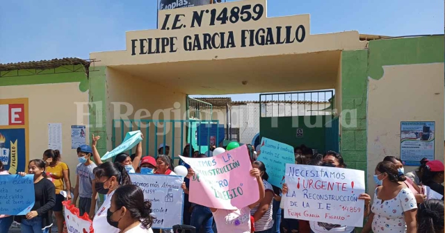 ERP. Padres de familia de la institución educativa N° 14859 “Felipe García Figallo” del distrito de Miguel Checa, provincia de Sullana, vienen reclamando pronta solución para la infraestructura, considerando que dicha escuela quedó afectada tras el sismo del 2021, pero pese a ello, solo hubo ofrecimientos de solución, lo que nunca ha sucedido, según indicó la directora Prof. Digna Saavedra Juárez. “La vida de los estudiantes peligra” indicó.