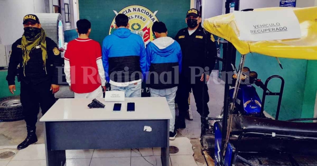 ERP. Efectivos policiales lograron capturar a tres menores de edad, quienes se movilizaban en una mototaxi en actitud sospechosa. Se trata de J.A.G.R (14), J.J.U.R (17) y J.E.F.V.R (16) conductor de la mototaxi, a quienes se le encontró un celular reportado como robado y una réplica de arma de fuego la misma que era usada para someter a sus víctimas.