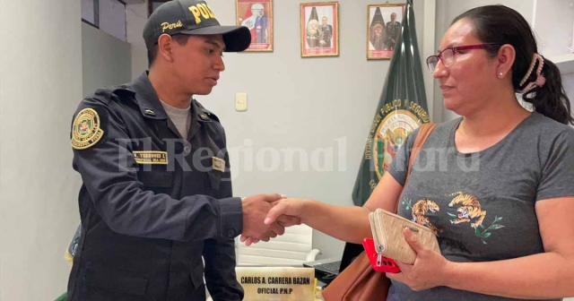 Utilizando las herramientas tecnológicas del momento y sobre todo las redes sociales, se procedió a ubicar a la señora Mendoza Alvarado, para proceder a devolverle la billetera que fue extraviada a inmediaciones del Óvalo Tallán, en la esquina de la Panamericana y avenida José de Lama. En tal sentido, se le convocó a la Comisaría de Sullana, donde se procedió a hacerle entrega de documentos y dinero.