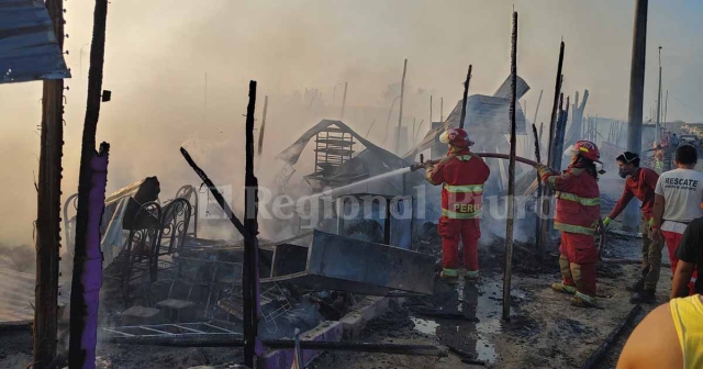 ERP. Un voraz incendio dejó esta tarde almenos doce viviendas reducidas a cenizas en Ampliación Nuevo Horizonte sector B "Virgen de Guadalupe", en la provincia de Sullana.
