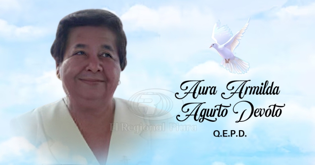 ERP. La educación sullanera se encuentra de luto. La destacada docente Aura Armilda Agurto Devoto, dejó de existir tras no poder superar una enfermedad que la afectó en los últimos años de su vida. Con más de 50 años de ejercicio docente, fue reconocida en el 2017 por sus aportes a la educación y sobre todo a la niñez en instituciones educativas públicas y privadas de esta localidad.
