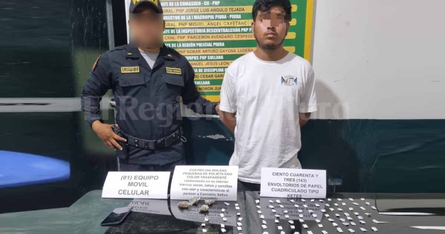 Se trata de Carlos Gabriel Lloclla Montero (30), quien fue intervenido en el asentamiento humano 9 de Octubre, portando 143 ketes, presuntamente de pasta básica de cocaína, así como 04 bolsas pequeñas contenido material que podría ser Cannabis Sativa o más conocida como marihuana.