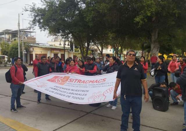 ERP. El Sindicato de la Caja Municipal de Sullana, cumplió un Plantón por lo que consideraron una demanda legítima y justa, dirigiéndose a la Junta de Accionistas, para que invoque al Directorio se atienda a la clase trabajadora. Deberían rendir cuentas cuánto gana el directorio y cuanto reciben de dietas, indicó el dirigente en representación de un compacto grupo que demanda el diálogo.