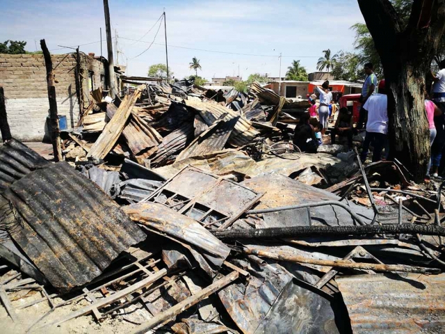 ERP. El incendio registrado la noche del domingo 28 en la avenida Par Vial Mz B, del asentamiento humano 17 de Enero, dejó 9 casas destruidas y seis afectadas, por lo que las familias afectadas vienen solicitando, triplay, calaminas, agua, comida, ropa y medicina.