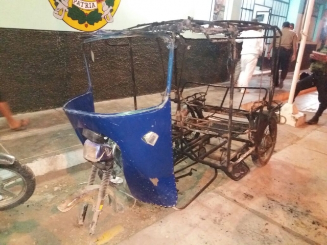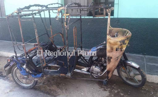ERP. Vecinos del barrio Buenos Aires de la provincia de Sullana, incineraron un trimóvil luego que un grupo de delincuentes dedicados a realizar asaltos bajo la modalidad de 'la arañita' abandonaran la unidad, en el momento que un transeúnte realizara disparos al aire cuando un pasajero era asaltado.