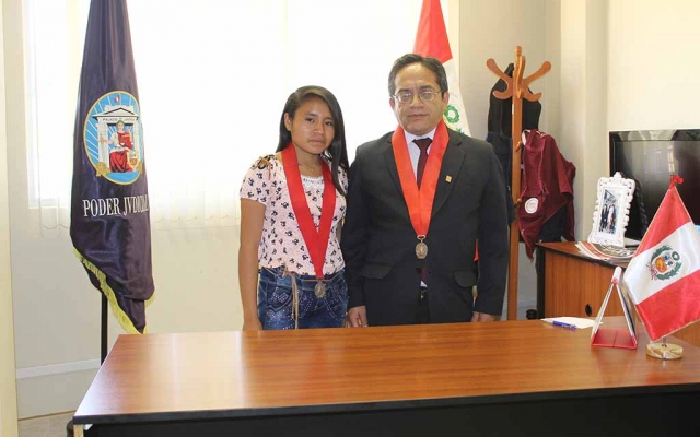 ERP. Por Día Internacional de “La Niña”. La alumna Sandra Vílchez Imán de la institución educativa “José Antonio Encinas” de 5to año de secundaria de la comunidad Loma Negra en el distrito piurano de La Arena, asumió de modo simbólico la Presidencia de la Corte Superior de Justicia de Sullana al conmemorarse hoy miércoles 11 de setiembre el Día Internacional de La Niña.