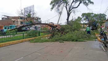 ERP. Una torrencial lluvia acompañada de truenos y relámpagos soportó la población de la provincia piurana de Sullana esta madrugada, resultando afectadas varias viviendas e incluso produjo la caída árboles.