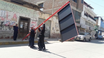 ERP. Sancionarán a empresas que actúen sin contar con los permisos municipales. Fiscalización de la Municipalidad de Sullana procedió a retirar postes con material publicitario que habían sido instalados en la vía pública sin los permisos correspondientes.