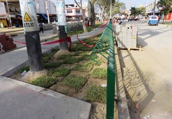 ERP. El Consorcio Vial “José de Lama”, empresa responsable de las obras de remodelación de la principal avenida de la ciudad de Sullana, inició la instalación del verjado en las jardineras, el sembrado de césped y los diferentes plantones en las primeras cuadras de esta arteria, ya que la obra total comprende desde la transversal Dos de Mayo hasta el Ovalo Turicarami.