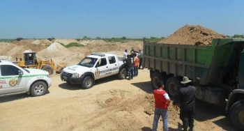 ERP. Durante operativo ‘Minería Ilegal No Metálico 2017’. Cuatro personas y sus vehículos fueron intervenidos por los policías del Departamento de Protección del Medio Ambiente (DEPPMA) en circunstancias que estaban extrayendo material no metálico sobre un área de 8 HA, a unos 400 metros de la autopista El Sol que une Sullana y Piura.