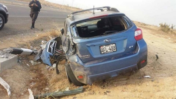 ERP. Una pareja novios procedentes de la ciudad de Lima salvaron de morir en vísperas de culminar el año 2016 luego que la moderna camioneta deportiva diera varias vueltas de campana tras haber sido chocada por un pesado bus interprovincial a lo largo de la autopista El Sol que une Sullana con Piura.