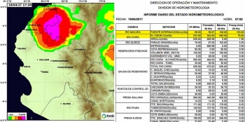 ERP/J.Uriol.Imágenes satelitales tomadas ayer martes 18 abril a las 17H30, confirmaban la presencia de masas nubosas en la frontera peruano – ecuatoriana, en la zona de los cerros de Amotape, Tumbes y principalmente en la cabecera del río Chira, anunciando lluvias de fuerte intensidad.