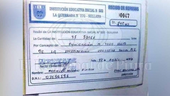 ERP. Indignante. El Trabajador de la subregión de Salud, Manuel Marcos Pinday, fue denunciado por la directora del colegio inicial N° 502, Nina Juárez Villegas, quien lo acusó de cobrarle 15 soles, para fumigar el colegio y eliminar los zancudos. Por si esto fuera poco, hasta le firmó y selló un recibo.